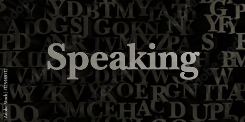 Speaking - Stock image of 3D rendered metallic typeset headline illustration. Can be used for an online banner ad or a print postcard.