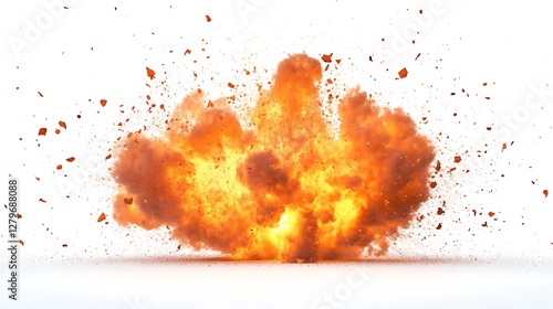 Spectacular Explosion of Fire and Debris Against a Clean White Background