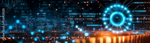 Spectacular futuristic cityscape with illuminated skyscrapers and modern architecture