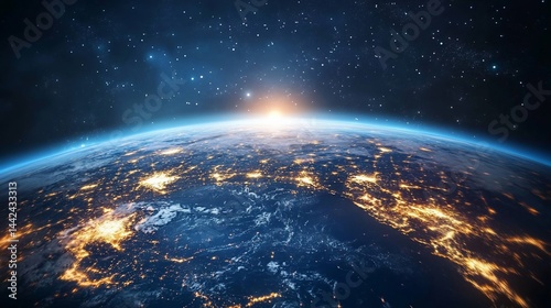 Spectacular View of Earth from Space at Sunrise with City Lights