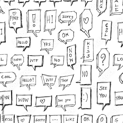Speech Bubble doodle background seamless pattern. Drawing vector illustration hand drawn eps10
