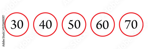 Speed limit 10, 20 km icon . Maximum speed limit 10 km per hour . Speed limit 10 km traffic sign . Vector illustration IN EPS 10 .