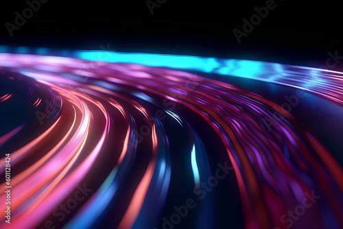 Speed of Data: Abstract 3D Render with Dynamic Light Trails and Neon Glow, Generative AI