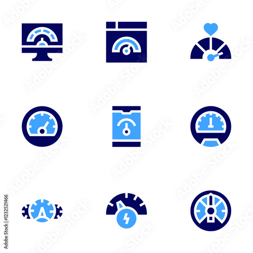Speedometer icon set. Bold style. Duotone colors. speedometer, gauge, meter