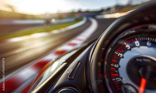 Speedometer scoring high speed in a fast motion blur racetrack background. Speeding Car Background Photo Concept.