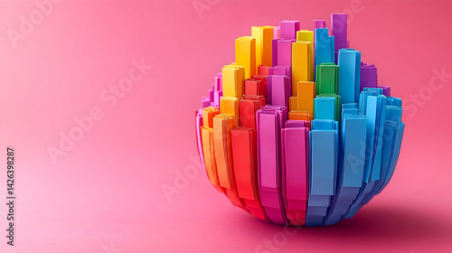 Sphere of colorful blocks in vertical arrangement against a pink background