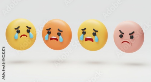 Spherical Emotions: Crying, Sad, and Angry Faces in a Row.