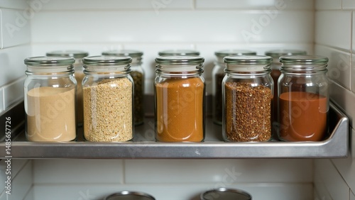 Spice Jars On A Shelf In Kitchen