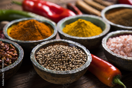 Spices on a wooden table