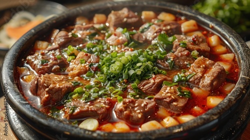 Spicy Beef Stew with Scallions and Sesame Seeds