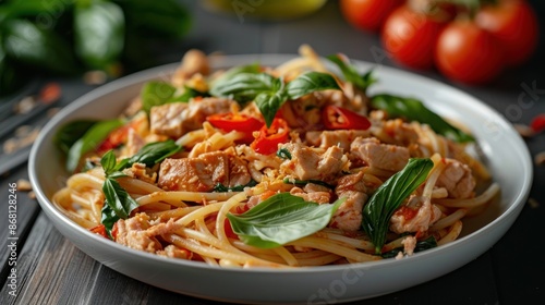 Spicy Chicken Pasta with Basil and Chili Peppers