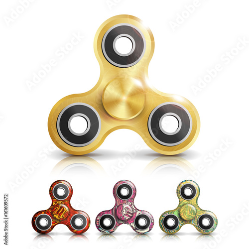 Spinner Toy Set Vector. Bright Plastic Fidgeting Hand Spinner Toy. Spinning Machine. Rotation. Fidget Finger Spinner Stress, Anxiety Relief Toy. Realistic 3D Vector Illustration