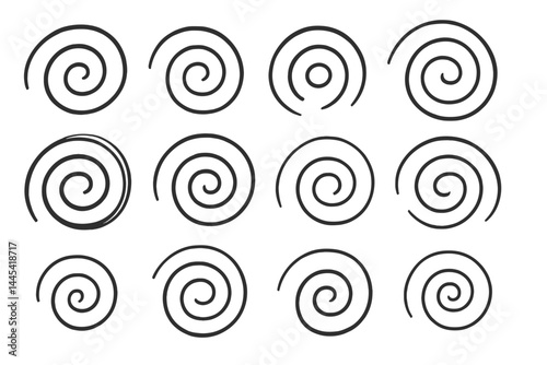Spiral vector icons in various sizes and styles for creative design projects and digital applications