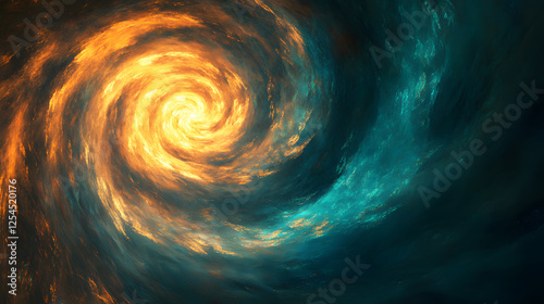 Spiral vortex in dark blue sky with glowing celestial elements and cosmic background
