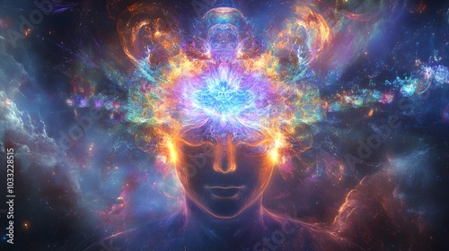 spirituality with ethereal, mystical shapes and a sense of transcendence. groovy graphic