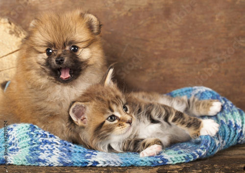 Spitz puppy and kitten breeds Maine Coon, Cat and dog