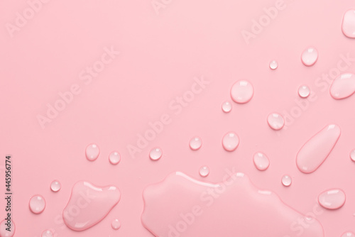 Splash of Water and drops on a pastel pink background. Water texture close up. Backdrop glass covered with drops of water. Water bubbles