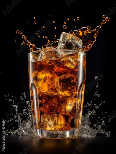 Splatted drinks and ice cubes,created with generative ai tecnology.