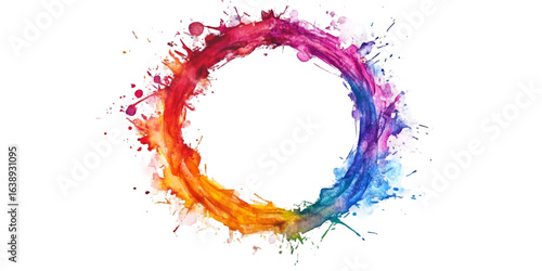 Splattered Circle of Watercolor Isolated on Transparent Background