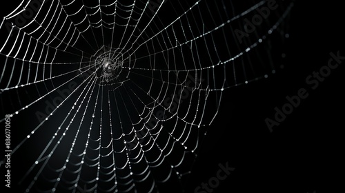 Spooky cobweb and creepy spiders on dark black background for a chilling halloween atmosphere