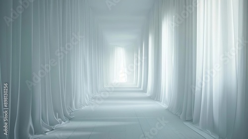 Spooky curtains with glowing eyes and moving shadows copy space, haunted look, whimsical, Composite, hallway