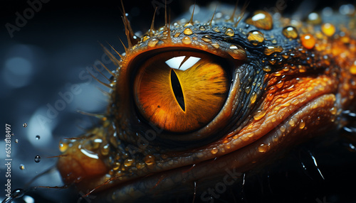 Spooky eye of a small reptile, looking underwater at night generated by AI