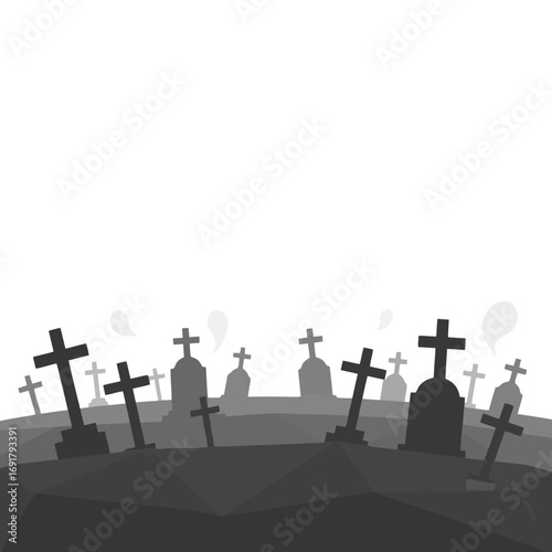 Spooky Graveyard Scene with Tombstones and Ghosts, Ideal for Halloween Decorations, Themed Events, and Digital Design Projects with an Eerie and Festive Atmosphere.