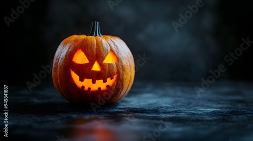 Spooky Jack-o'-Lantern with Glowing Face on a Dark Background