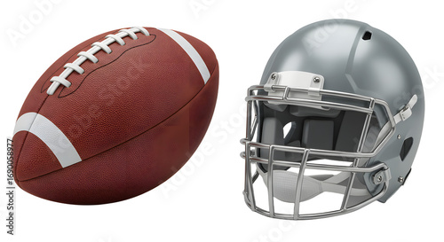 SPORT - American football with silver helmet isolated on white background, perfect for sports promotions and athletic events