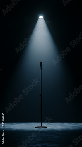 Spotlit microphone on stage, ready for a performance or important announcement, emphasizing anticipation and focus in a darkened setting.