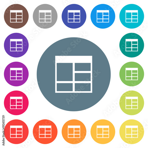 Spreadsheet vertically merge table cells flat white icons on round color backgrounds