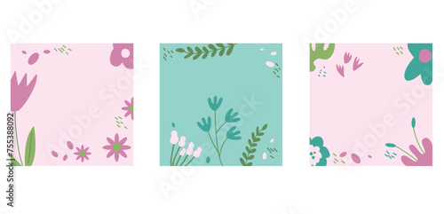 Spring backgrounds set. Floral abstract banner template collection. Card with flowers decoration. Vector flat illustration
