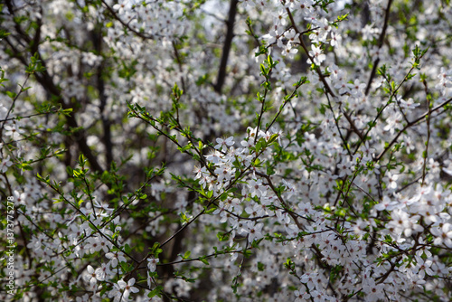 Spring Blossoms – Delicate White Flowers on a Tree Branch in Bloom