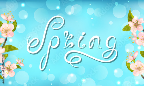 Spring Card with Cherry Blossom, Calligraphic Text