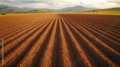 Spring Crop Preparation with Plowed Furrow Rows from Above