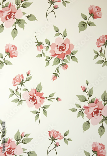 Spring floral embroidered wallpaper featuring a small flowers pattern in pastel pink and green tones on a white background, designed with a soft cottagecore aesthetic.