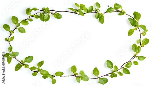 Springtime Oval Frame of Lush Green Leaves and Twigs