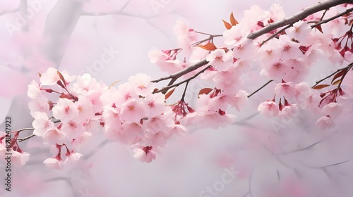 Springtime: Softly Blurred Cherry Tree Branches with Pink Blooms