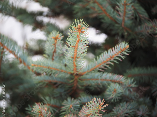 spruce branch in the forest