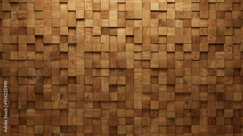 Square, 3D Wall background with tiles. Natural, tile Wallpaper with Timber, Wood blocks. 3D Render
