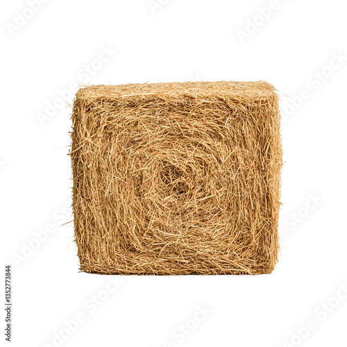 Square Bale of Hay: A rectangular bale shows the tightly packed stalks of hay. Harvested and bound, providing winter feed for farm animals.