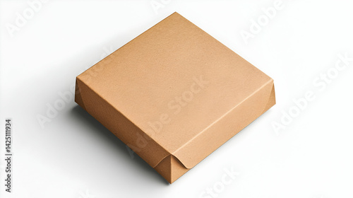 Square brown cardboard box on white background, ideal for product packaging or shipping illustration