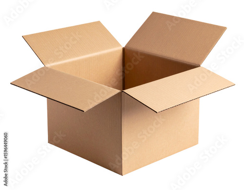 Square cardboard box with open flaps, isolated on a transparent background