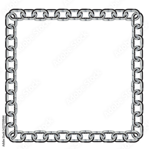 square frame made of shiny metal chain. isolated on white background
