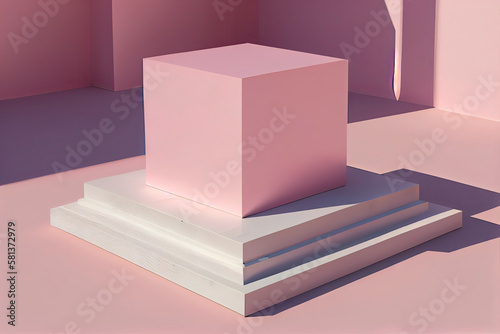 Square pink podium in an outdoor minimalist scene for a product presentation in 3D rendering