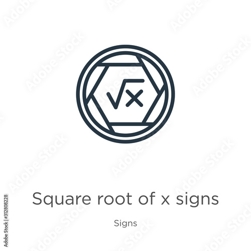 Square root of x signs icon. Thin linear square root of x signs outline icon isolated on white background from signs collection. Line vector sign, symbol for web and mobile