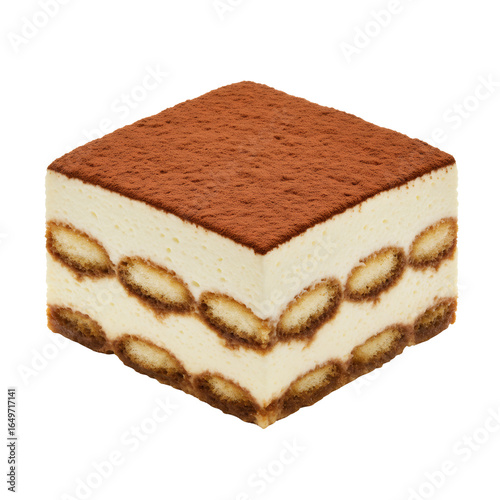 Square Slice of Tiramisu Dessert with Cocoa Powder