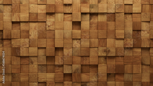 Square, Soft sheen Wall background with tiles. 3D, tile Wallpaper with Wood, Timber blocks. 3D Render