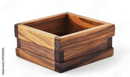 Square wooden box, handcrafted, empty container.