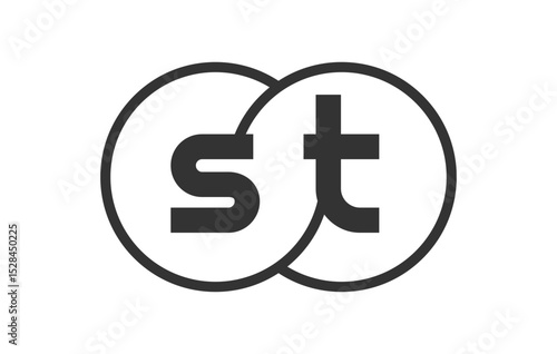 ST business company emblem with outline rounds and letters s t. Logo template of two merged circles for brand identity, logotype. Vector Infinity symbol